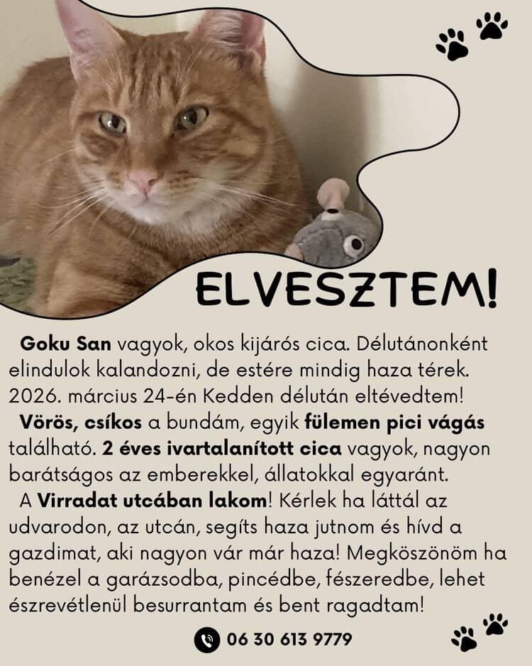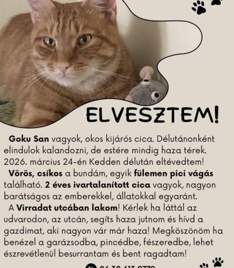 Ha láttad, befogadtad, vagy bármi információd van róla, kérlek azonnal hívj: